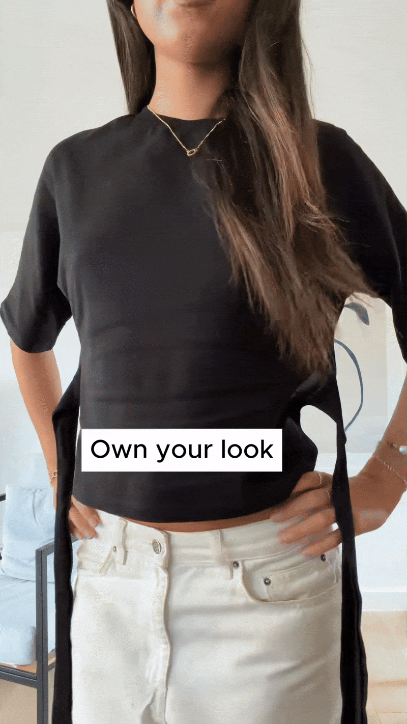 Such a flattering and easy top to style. The tie-back lets you control the fit, which makes a big difference, especially around the waist. I love how minimal it looks from the front and how the open back adds a subtle statement. Really happy with this one.