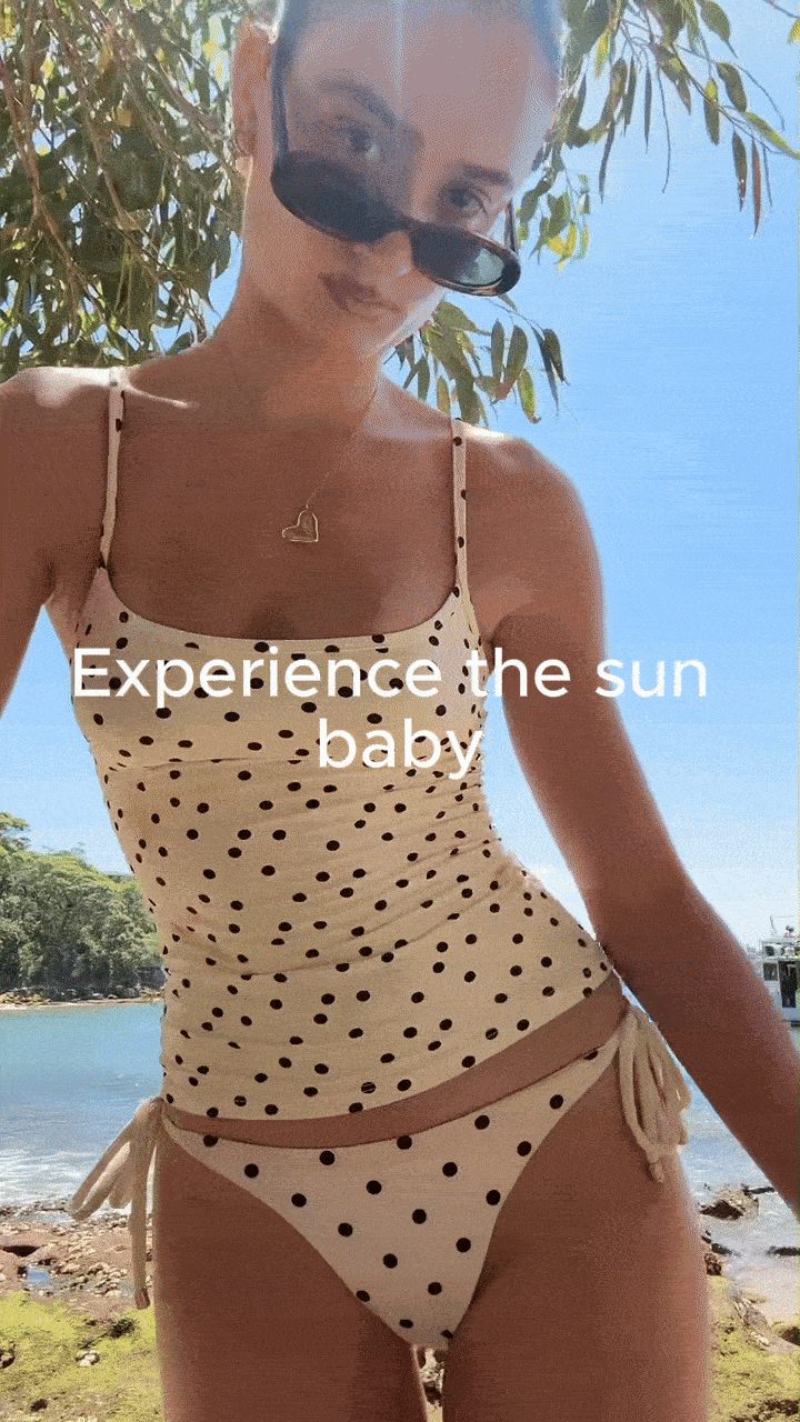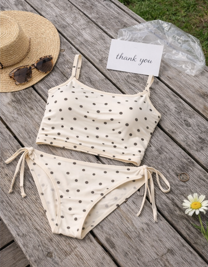 ★★★★★“This swimsuit looks exactly like the photos, which is rare. The polka dot print is really cute and the bottoms stay in place without digging in. I’m between sizes and sized up like suggested — fit was perfect. Definitely ordering another color if it comes out.”